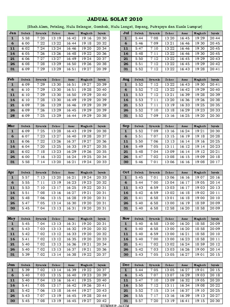 Jadual Waktu Solat Kuala Lumpur Putrajaya Shah Alam Petaling Jaya Hulu Selangor Gombak Hulu Selangat Sepang Putrajaya 2010 Pdf